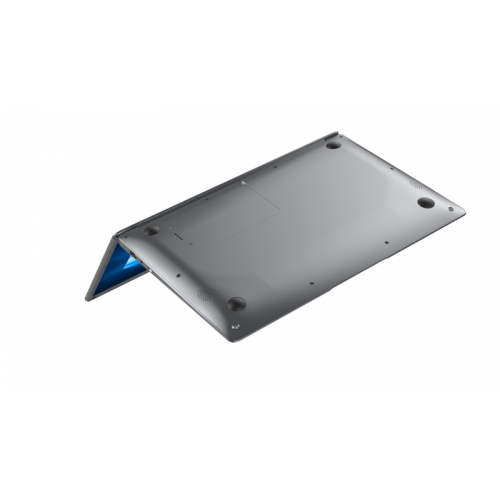 O design é compacto e leve, com dimensões de 329x220x21mm e um peso de 1,25kg, facilitando o transporte e uso em diferentes ambientes. A bateria de 5000mAh oferece uma autonomia estimada de 4 a 6 horas, permitindo um uso prolongado sem necessidade de carregamento. Inclui diversas portas, como mini HDMI e USB 3.1, para conectar periféricos. O material é plástico, resistente e durável.