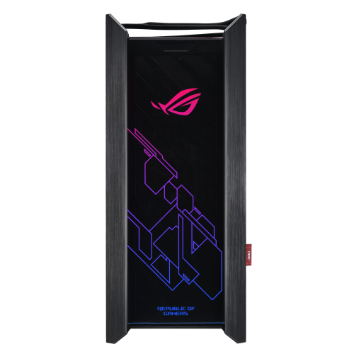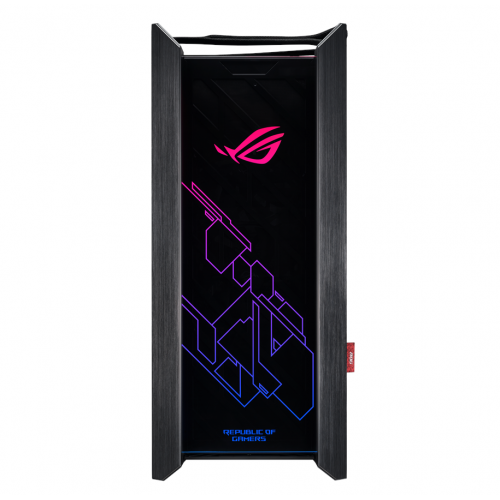A GX601 conta com um painel frontal com iluminação RGB personalizável, permitindo criar efeitos de luzes dinâmicos e sincronizados com outros componentes ASUS Aura Sync. Os painéis laterais e frontal são feitos de vidro temperado, proporcionando uma visão clara dos componentes internos e adicionando um toque premium ao design.