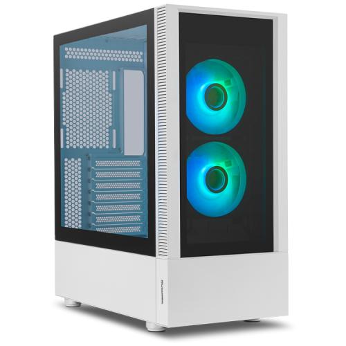 A Nox Hummer Nemesis é uma caixa de computador Midi Tower de alta qualidade, com um design minimalista e elegante em branco. Destacam-se os painéis laterais e frontais em cristal temperado, que permitem visualizar o interior do seu PC. Inclui dois ventiladores ARGB que garantem um bom fluxo de ar, e tem espaço para até oito. Compatível com placas gráficas de até 350 mm e sistemas de refrigeração líquida, oferece ampla compatibilidade e facilidade de montagem. Na parte superior, encontra portas USB 3.0 e 2.0, além de conexões de áudio.