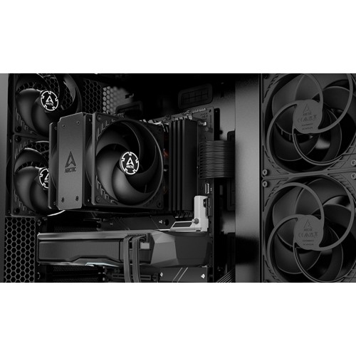 Com sua configuração push-pull, o Freezer 36 impressiona não apenas pelo desempenho de resfriamento eficiente, mas também pelo design. As extremidades soldadas dos heatpipes são ocultas pela tampa de alumínio aparafusada, permitindo que ele se integre perfeitamente a qualquer setup de PC, destacando tanto o desempenho quanto a aparência.