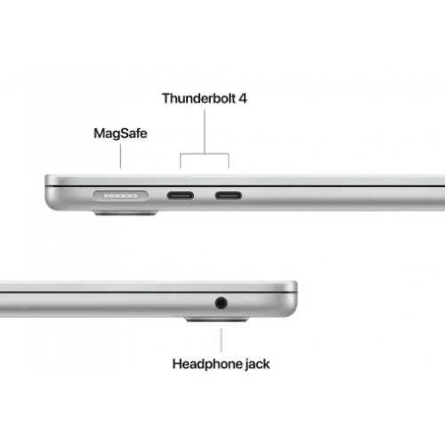 A conectividade inclui duas portas Thunderbolt USB 4 (USB-C) para transferência de dados, carregamento e ligação a ecrãs externos. Possui também uma saída para auscultadores de 3,5 mm e porta de carregamento MagSafe 3, que facilita o carregamento e aumenta a segurança. A câmara 12MP Center Stage e os microfones integrados proporcionam uma excelente qualidade de imagem e som para videochamadas. A conetividade Wi-Fi 6E e Bluetooth 5.3 garantem ligações rápidas e estáveis.