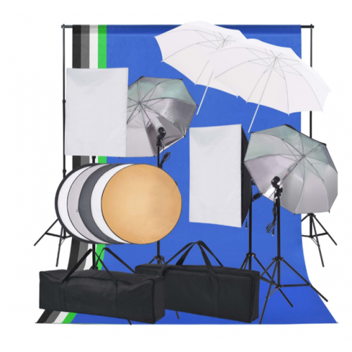 Este kit completo de iluminação e fundos é essencial para fotógrafos profissionais que necessitam de equipamento de alta qualidade e portabilidade. Concebido para oferecer flexibilidade e praticidade em qualquer ambiente de fotografia, quer em estúdio ou em localizações externas.