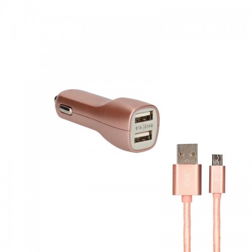 Carregador Ksix Metalizado 2x USB 2.1A + Cabo Micro-USB, Dourado Rosa