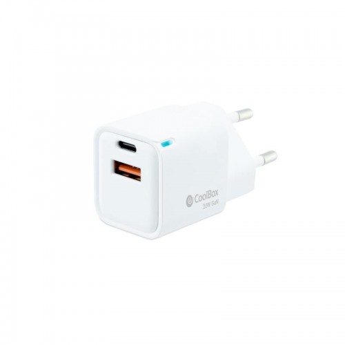 Cargador Coolbox 20W USB-C/USB-A, GaN, Parede/Viagem, COO-CUP-20CA