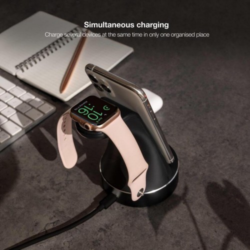 - Compatibilidade: Apple Watch (todos os modelos), iPhone 8 e superior, Smartphones com Qi