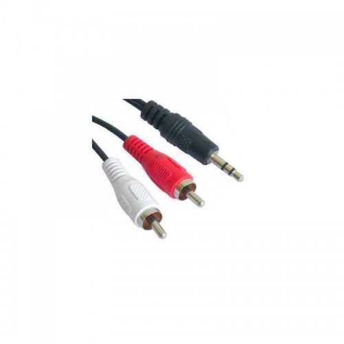 Cabo de áudio estéreo Nanocable 10.24.0310, com conectores 3.5mm macho e 2 RCA macho. Comprimento de 10 metros e cor preta. Ideal para conectar dispositivos de áudio a sistemas de som.