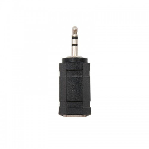Adaptador de áudio estéreo Nanocable 10.27.0002, que converte uma ligação Jack 2.5mm (fêmea) para uma ligação Jack 3.5mm (macho).  Cor preta.