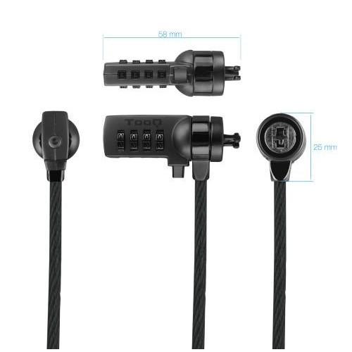 Cabo de Segurança TooQ com Combinação para Portátil, 1,5m, Cinzento Escuro