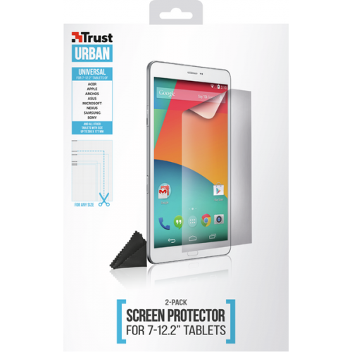 Este protetor de ecrã Trust é uma solução universal para tablets com até 12.2 polegadas. O conjunto contém duas unidades, oferecendo uma proteção extra para o seu dispositivo. O material resistente a riscos protege o seu ecrã contra arranhões e desgaste diário. A sua aplicação é fácil e rápida, sem deixar bolhas. O protetor garante uma clareza óptica ideal, permitindo a utilização plena do seu tablet sem comprometer a qualidade da imagem. Ideal para manter o seu tablet como novo por mais tempo.