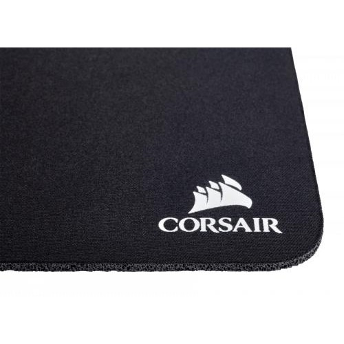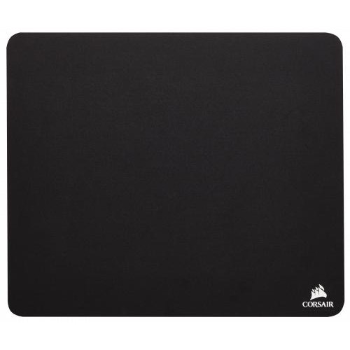 Tapete de rato Corsair MM100, de superfície lisa e base antiderrapante, ideal para jogos.  Design simples e preto, com dimensões compactas, perfeito para diversos tipos de utilizadores.