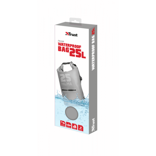 A mala impermeável Trust Palma na cor cinza é uma solução prática e resistente para transportar seus pertences com segurança, principalmente em ambientes húmidos ou com risco de chuva. Com um design compacto e uma capacidade de 25 litros, esta mala é perfeita para atividades ao ar livre, como ir à praia ou praticar desporto.