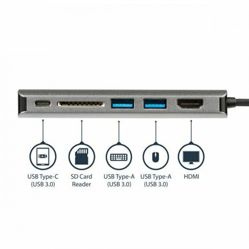 A Docking Station StarTech DKT30CSDHPD3 oferece uma solução prática e eficiente para expandir as opções de conectividade do seu tablet ou portátil. Construída em alumínio de alta qualidade, esta docking station apresenta um design elegante e robusto, ideal para ambientes profissionais ou domésticos. A sua principal funcionalidade é expandir o número de portas disponíveis, permitindo conectar diversos periféricos simultaneamente, como monitores externos, teclados, mouses e outros dispositivos. A cor cinza confere um visual discreto e sofisticado que se adapta a diversos ambientes. A sua construção em alumínio garante durabilidade e resistência, assegurando um longo período de uso sem comprometer o desempenho.