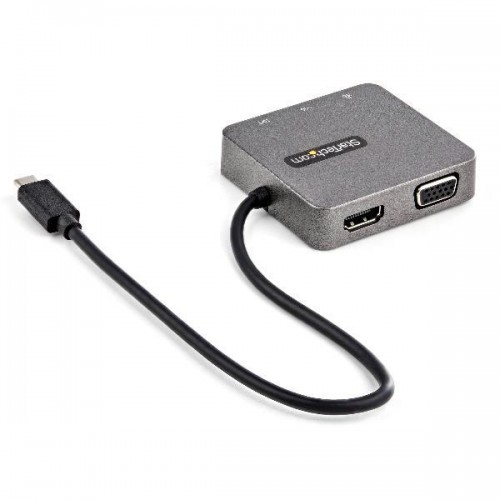 O adaptador multiportas USB-C HDMI/VGA da StarTech, modelo DKT31CHVL, oferece uma solução prática e eficiente para expandir as capacidades de conectividade do seu computador portátil ou tablet equipado com uma porta USB-C. Com um design elegante e robusto, construído em alumínio de alta qualidade na cor cinzenta, este adaptador integra-se perfeitamente em qualquer ambiente de trabalho ou doméstico. A sua principal função é permitir a ligação de um monitor externo, proporcionando flexibilidade para trabalhar ou desfrutar de entretenimento em diferentes cenários.