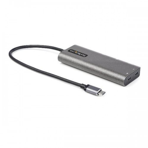 O adaptador multiportas USB-C StarTech DKT31CMDPHPD é uma solução elegante e prática para expandir a conectividade do seu computador portátil. Construído em alumínio de alta qualidade, com um acabamento cinzento sofisticado, este adaptador integra-se perfeitamente em qualquer ambiente de trabalho, seja um escritório moderno ou um espaço de trabalho mais tradicional. A sua principal função é expandir as portas disponíveis no seu portátil, permitindo ligar diversos periféricos simultaneamente, sem a necessidade de utilizar vários adaptadores. Isto inclui monitores, impressoras, dispositivos de armazenamento externo, teclados, ratos e outros dispositivos.