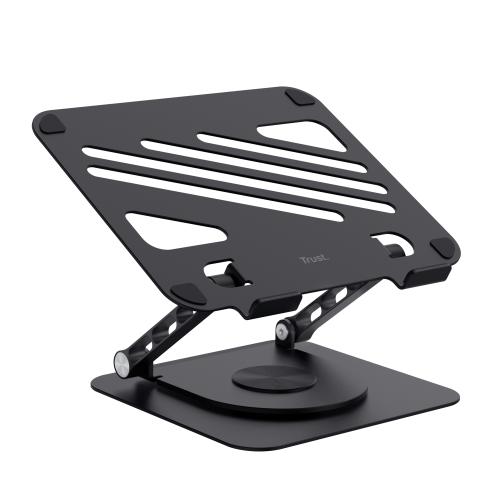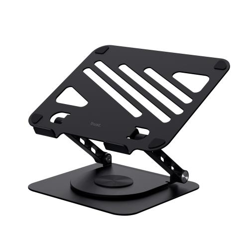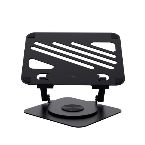 Suporte para portátil Trust Zeff, em metal preto, para ecrãs até 40,6 cm (16 polegadas).  Design dobrável e ajustável em altura.  Suporta até 10kg.  Dimensões compactas.