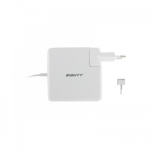 O carregador Eightt EAUTT é uma solução de carregamento versátil e eficiente para dispositivos Apple. Este carregador universal suporta múltiplas potências, oferecendo 45W, 60W e 85W para carregamento MagSafe 2, e adicionalmente uma porta USB de 10W (5V, 2.1A) para carregar outros dispositivos simultaneamente. Ideal para quem necessita de carregar o seu portátil Apple e outros dispositivos com uma única fonte de alimentação.