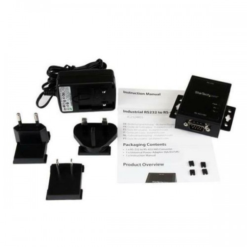 Este cabo conversor StarTech (IC232485S) permite conectar dispositivos com interfaces DB9. Apresenta um conector DB9 fêmea numa extremidade e um conector macho na outra. O cabo é preto e cada embalagem contém uma unidade.