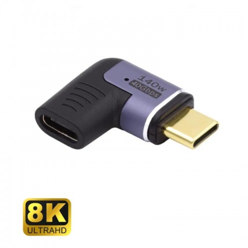Adaptador magnético USB-C Ewent EC1048, com suporte a USB4, Power Delivery de 140W e transmissão de vídeo 8K@60Hz. Conector a 90 graus.