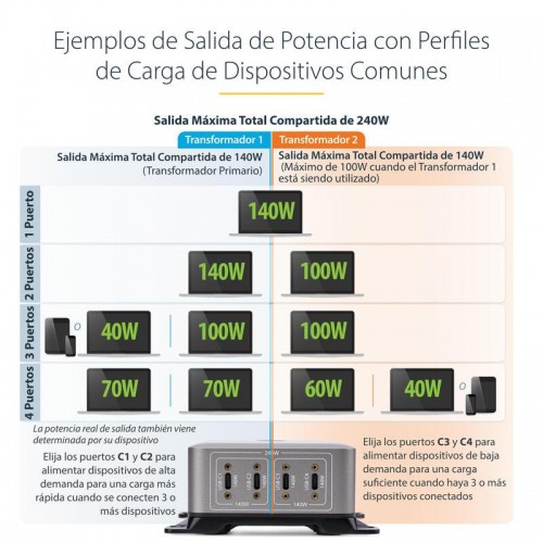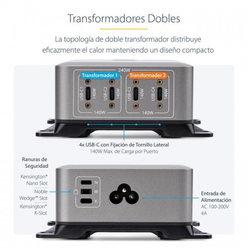 Cargador StarTech 4 Portas USB-C 240W, PD 3.1, GaN