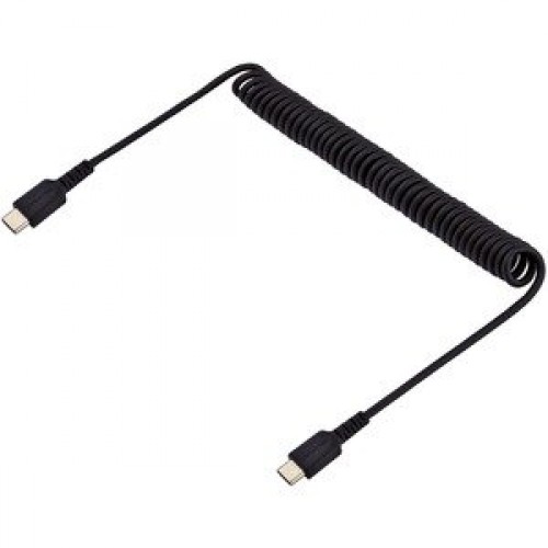 StarTech.com 3ft (1m) USB C Charging Cable, Coiled Heavy Duty Fast Charge & Sync USB-C Cable, High Quality USB 2.0 Type-C Cable, Rugged Aramid Fiber, TPE, 3A, S20, iPad, Pixel - Durable Male to Male USB, Black - Cabo USB - 24 pin USB-C (M) para 24 pi