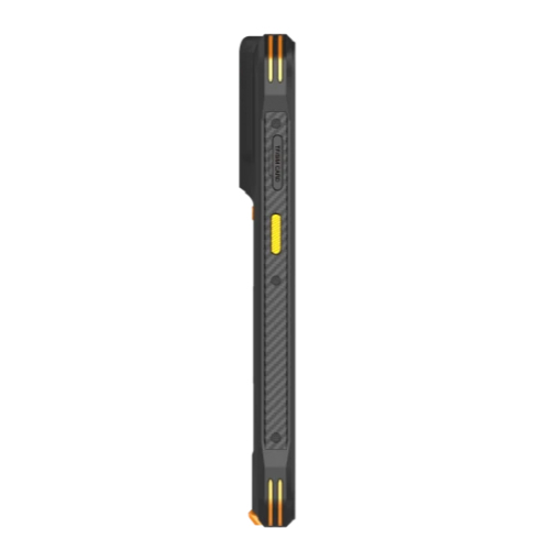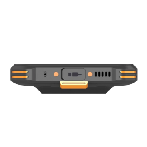 Em termos de robustez, o EM5-H68T é projetado para resistir a quedas de até 1.5 metros e opera em temperaturas de -20 °C a 60 °C, com temperatura de armazenamento de -30 °C a 70 °C, e humidade até 95% (não condensável). Possui certificação IP68 e MIL-STD-810H, garantindo resistência à água, poeira e impactos. A interface I/O inclui USB Tipo-C, Pogo Pin para carregamento e ranhuras para cartões (2 de 3: Micro SIM + TF ou Micro SIM + Nano SIM). Dispõe de um scanner integrado 1D/2D e teclas de leitura de código de barras. Conta também com botões físicos, como Power e Leitor de Impressões Digitais, Volume +/-, e teclas de leitura de código de barras.