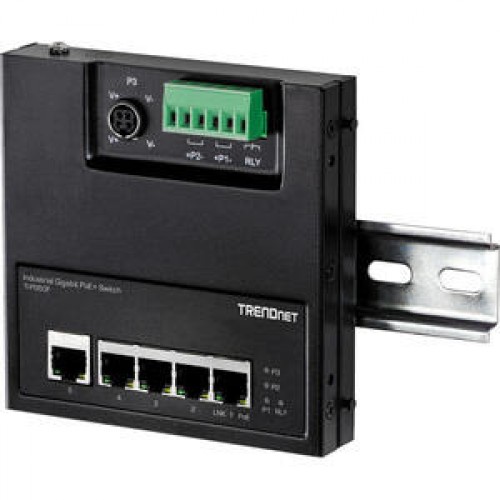 O switch Gigabit Ethernet industrial TI-PG50F da TRENDnet é um switch de camada 2 com 5 portas, montado na parede e compatível com trilho DIN. Oferece tecnologia PoE+ para alimentar dispositivos conectados. Ideal para ambientes industriais e de alta segurança.