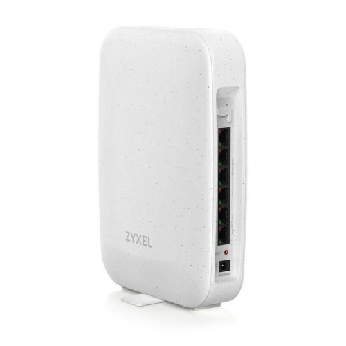 Router Zyxel USG-LITE 60AX com Wi-Fi 6, ideal para redes domésticas e pequenas empresas. Possui uma porta WAN de 2.5 Gigabit Ethernet e quatro portas LAN Gigabit Ethernet, oferecendo velocidades de transferência de dados elevadas. Inclui funcionalidades avançadas de segurança, como firewall e VPN, e é compatível com Mesh WiFi. Design compacto e elegante em branco.