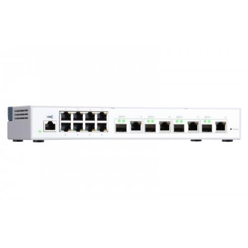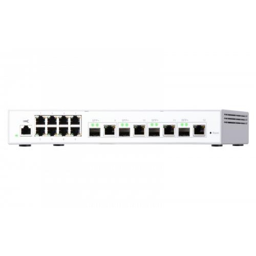 O switch QNAP QSW-M408-4C é um switch Gigabit Ethernet gerenciado de camada 2, ideal para pequenas e médias redes. Oferece 8 portas Gigabit Ethernet RJ-45 e 4 portas combinadas SFP para conectividade flexível. Com capacidade de comutação de 96 Gbps e uma tabela MAC de 16.000 entradas, garante um desempenho estável e eficiente. Suporta VLANs, QoS e outras funcionalidades de gestão de rede avançadas. Design compacto e fácil de configurar, ideal para uma variedade de aplicações em redes locais.