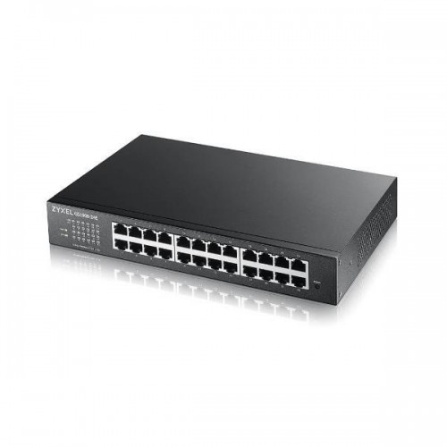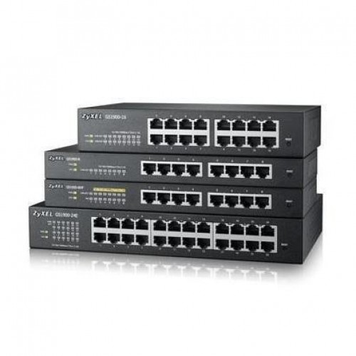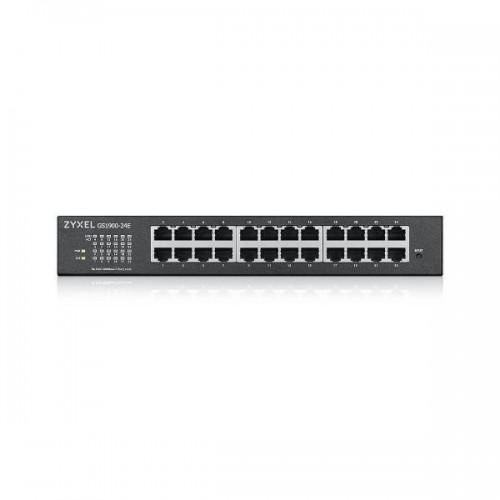 Switch Gigabit Ethernet inteligente Zyxel GS1900-24E-EU0103F com 24 portas. Gestão inteligente via browser, design sem ventoinha, e suporte para Green Ethernet IEEE 802.3az. Recursos avançados de prevenção de erros de rede. Ideal para pequenas e médias empresas.