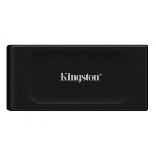 Disco SSD externo Kingston XS1000 de 2TB, com interface USB Type-C 3.2 Gen 2 para velocidades de até 1050 MB/s. Design compacto e robusto em preto. Compatível com Windows, macOS e Android. Oferece alta capacidade de armazenamento e transferência rápida de dados.