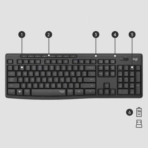 O teclado apresenta um layout QWERTY internacional (US), adequado para utilizadores que necessitam de um teclado com caracteres específicos. O teclado tem um formato completo (100%), incluindo um teclado numérico, para maior comodidade. A tecnologia sem fios de 2,4 GHz garante uma conexão estável e confiável, com um alcance de até 10 metros. O teclado é alimentado por duas pilhas AAA, com uma autonomia de até 36 meses.