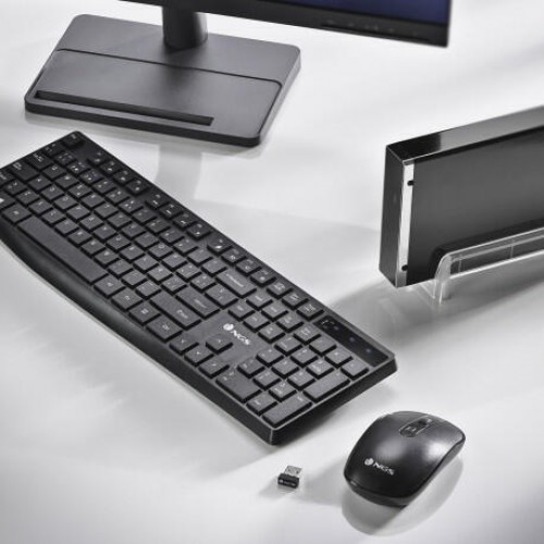 WIRELESS MULTIMODE KEYBOARD + MOUSE SET TECLADO - Teclado sem fios que oferece três tipos de conexão (BT4.0 + BT4.0 + 2.4GHz sem fios): Permite trabalhar com 3 dispositivos ao mesmo tempo e alternar rapidamente de um para o outro pressionando o seletor de modo. - Possui dois canais para a conexão BT 4.0, com uma cobertura de 10M e uma reconexão automática. - Inclui um canal para USB Dongle de 2,4GHz com uma conexão poderosa e fiável - Vem incorporadas 12 teclas de acesso direto multimédia. - Compatibilidade universal: suporta todos os dispositivos equipados com Bluetooth ou ligação USB - Traz indicadores LED para letras maiúsculas, modo e nível de bateria fraca. - Ele também incorpora um design minimalista e resistente a respingos, com aproximadamente 10 milhões de toques no teclado. - Equipado com almofadas de borracha para garantir uma posição estável do teclado e evitar deslizamentos. - Teclas curvas: proporcionam uma sensação de toque incrível. RATO - Rato sem fio ques oferece três tipos de conexão (BT4.0 + BT4.0 + 2.4GHz sem fios): Permite trabalhar com 3 dispositivos ao mesmo tempo e alternar rapidamente de um para o outro pressionando o seletor de modo. - Possui dois canais para a conexão BT 4.0, com uma cobertura de 10M e uma reconexão automática. - Inclui um canal para USB Dongle de 2,4GHz com uma conexão poderosa e fiável - Vem incorporadas 12 teclas de acesso direto multimédia - Possui sensor de alto desempenho, DPI totalmente ajustável: 800/1200/1600. - Inclui um scroll de metal anti deslizante para melhor desempenho e 4 botões. - Botão liga / desliga para economia de energia - Operação ambidestra. - "Plug and play".