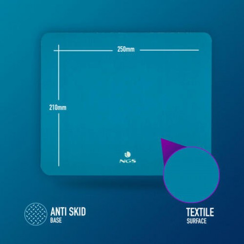 NGS MOUSE-1081. Largura: 250 mm, Profundidade: 210 mm. Cor do produto: Azul, Coloração de superfície: Monocromático, Material: Tecido, Borracha, Base antiderrapante, Tapete Gaming