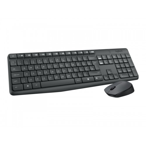 Teclado Logitech MK235: Wireless, Português, Resistente a Derrames, Cinzento