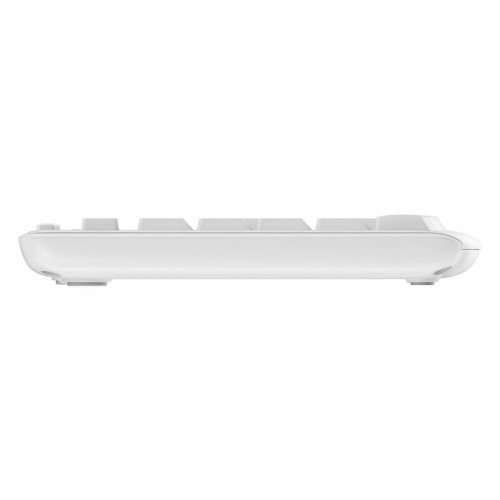 O teclado apresenta um layout QWERTZ alemão, ideal para utilizadores que trabalham com este tipo de teclado. As teclas silenciosas reduzem o ruído durante a digitação, proporcionando um ambiente de trabalho mais calmo e focado. O design ergonómico do teclado, aliado à possibilidade de ajuste de altura, garante conforto mesmo durante longas sessões de trabalho.