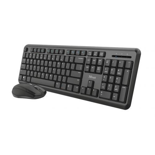 O Trust TKM-350 é um conjunto teclado e rato sem fios, projetado para oferecer conforto e eficiência em diversas tarefas. Este conjunto é ideal para quem procura uma solução prática e fiável para uso doméstico ou em escritório. A sua conectividade sem fios RF Wireless proporciona maior liberdade e mobilidade, eliminando a necessidade de cabos.