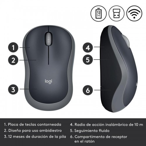 Rato Logitech M185, Óptico Sem Fio, Ambidestro, 1000 DPI, 3 Botões, Cinza