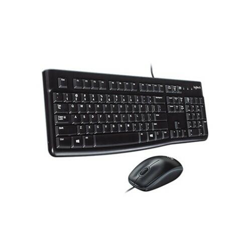 Conjunto teclado e rato Logitech MK120, na cor preta. Conexão USB. Teclado de tamanho normal com teclas planas e silenciosas. Rato óptico de alta definição. Design resistente a salpicos. Garantia de 2 anos.
