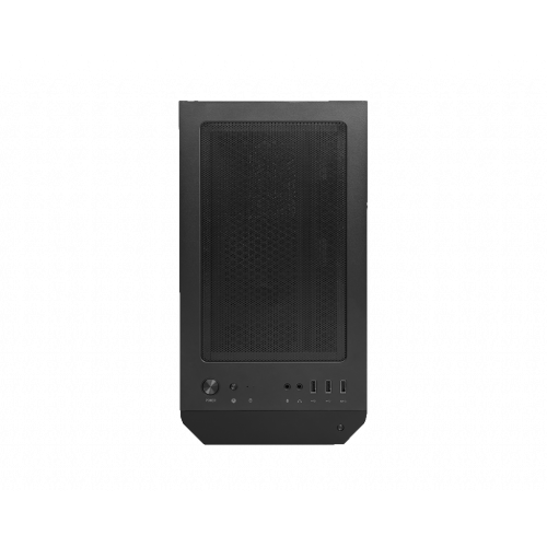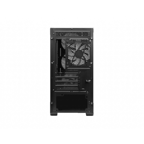 Esta caixa suporta motherboards Micro ATX e Mini-ITX, oferecendo flexibilidade para diferentes configurações de sistema. O seu interior é espaçoso e bem organizado, facilitando a instalação e a gestão de cabos. A MAG FORGE M100R vem equipada com ventoinhas pré-instaladas, incluindo ventoinhas frontais de 120mm e uma ventoinha traseira de 120mm, garantindo uma refrigeração eficiente para os componentes internos. Além disso, o design da caixa permite a instalação de ventoinhas e radiadores adicionais, para um sistema de arrefecimento ainda mais avançado.