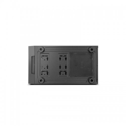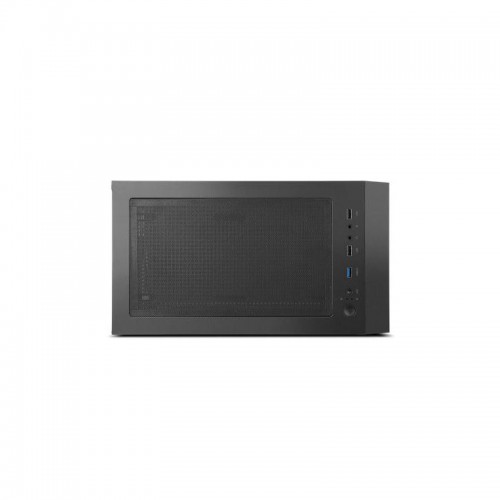 A conectividade é igualmente um ponto forte desta minitorre. O painel superior inclui dois portas USB 2.0 e uma porta USB 3.0 de alta velocidade, bem como conectores de áudio para uma fácil ligação de periféricos. Esta conectividade diversificada simplifica a integração de periféricos e equipamentos adicionais, sem a necessidade de utilizar portas na placa-mãe, otimizando o fluxo de ar interno.