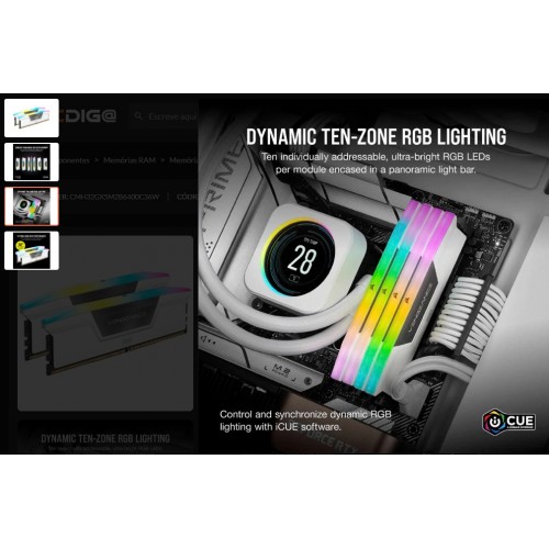 Memória Corsair DDR5 32GB (2x16GB) 6400MHz Vengeance CL36 Branca