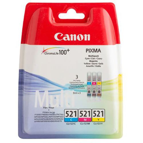 O Tinteiro Canon CLI-521 é um conjunto de tinteiros originais, projetado para oferecer impressões de alta qualidade em impressoras Canon. Este conjunto inclui cartuchos de tinta nas cores ciano, magenta e amarelo, essenciais para a reprodução de uma ampla gama de cores e tons nas suas impressões. A tecnologia de jato de tinta garante detalhes nítidos e cores vibrantes em fotos e documentos.