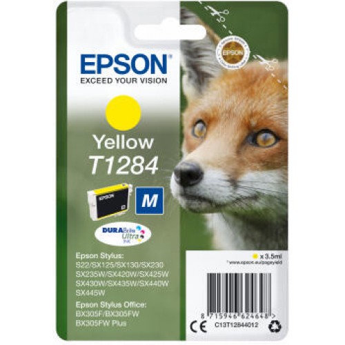 Epson T1284 - Tamanho M - amarelo - original - blister com RF/alarme acústico - tinteiro - para Stylus S22, SX230, SX235, SX420, SX430, SX435, SX438, SX440, SX445, Stylus Office BX305
