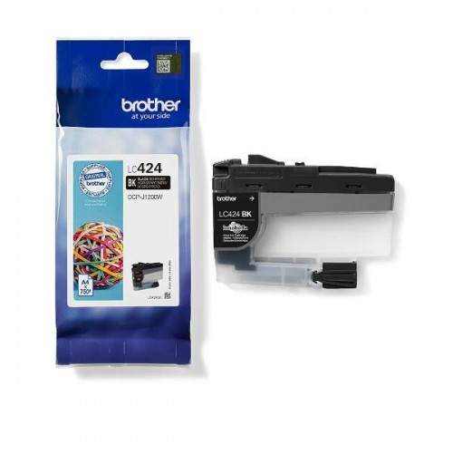 Cartucho de tinta Brother LC424BK, preto, para utilização em impressoras Brother compatíveis. Oferece uma duração estimada de até 750 páginas (segundo ISO/IEC 24711).