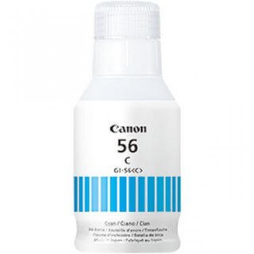 O tinteiro Canon GI-56 Ciano (4430C001) é compatível com as impressoras Canon MAXIFY GX6050 e GX7050. É um frasco de tinta ciano para recarga, fornecido individualmente.