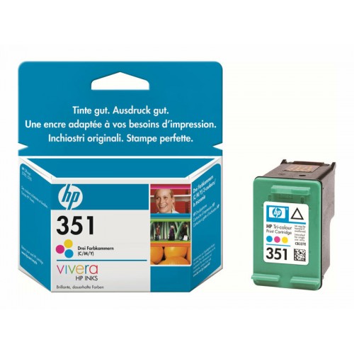 Cartucho de tinta original HP nº 351 tricolor (ciano, magenta, amarelo), ideal para impressão ocasional de documentos e fotografias. Oferece cores vivas e nítidas, com boa resistência à descoloração. Rendimento de aproximadamente 170 páginas. Compatível com diversas impressoras HP DeskJet e Photosmart.