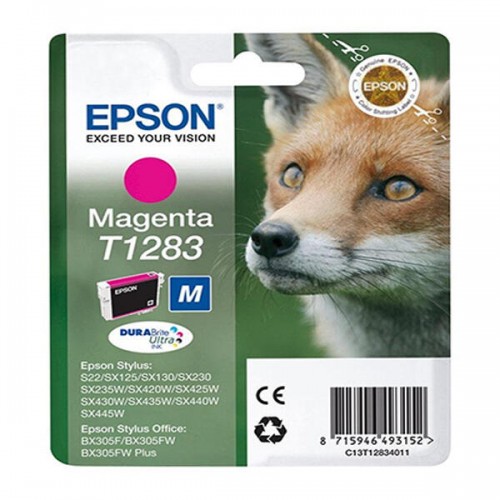 Tinteiro Magenta Epson T1283 DuraBrite Ultra para impressoras Epson. Compatível com uma vasta gama de modelos Epson, incluindo WF-3010DW, 3520DWF, 3540DTWF, BX935FWD, BX535WD, SX535WD, BX630FW, BX635FWD, WF-7015, 7525, BX305FW, SX235W, 445, 440, 435, 430, 230 e BX305FW. Oferece impressões vibrantes e duradouras. Garantia de 3 meses.