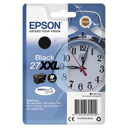 Epson 27XXL - 34.1 ml - XL - preto - original - blister - tinteiro - para WorkForce WF-3620, WF-3640, WF-7110, WF-7210, WF-7610, WF-7620, WF-7710, WF-7715, WF-7720