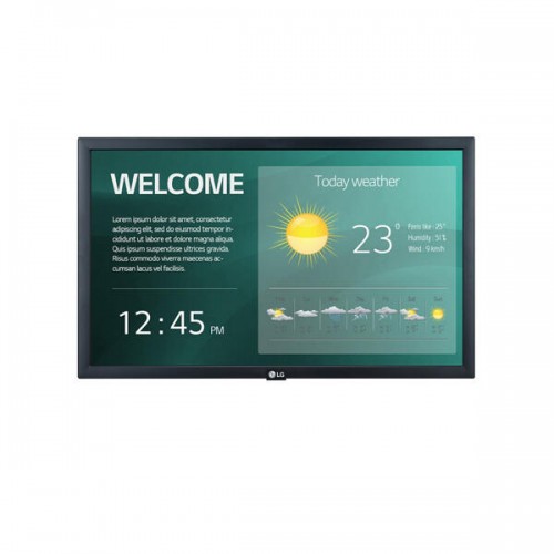 Monitor profissional LG 22SM3G de 22 polegadas com resolução Full HD, ideal para uso em escritórios e ambientes profissionais. Oferece brilho de 250 cd/m², moldura de 16,3 mm e profundidade de 53,8 mm. A conectividade inclui duas portas HDMI, USB 2.0, RS232C, RJ45, IR e áudio. Inclui funcionalidades como USB Plug & Play e Wi-Fi integrado.