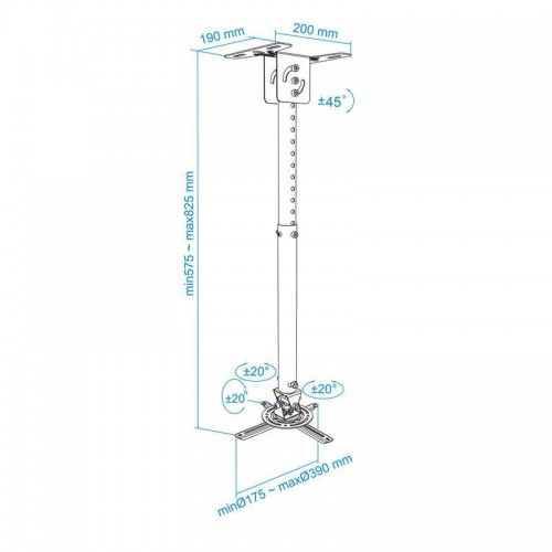 Suporte para Projetor Tooq PJ3030TN-B, Teto, Inclinável e Giratório, 20kg